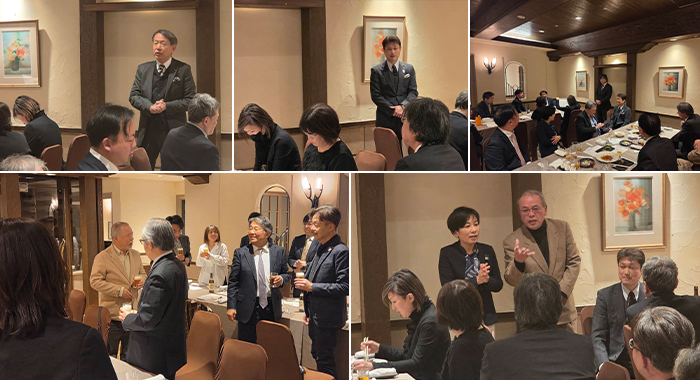 令和8年2月1日(日)学術講演会終了後、杯杯天山閣において新年会が開催された。外山専務司会のもと木田会長が挨拶に立った。